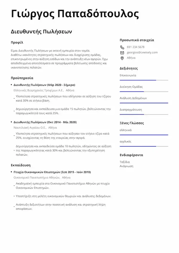Χάρη στο cvwisely.com, το βιογραφικό μου μετατράπηκε από απλό σε ισχυρό. Το συνιστώ ανεπιφύλακτα!