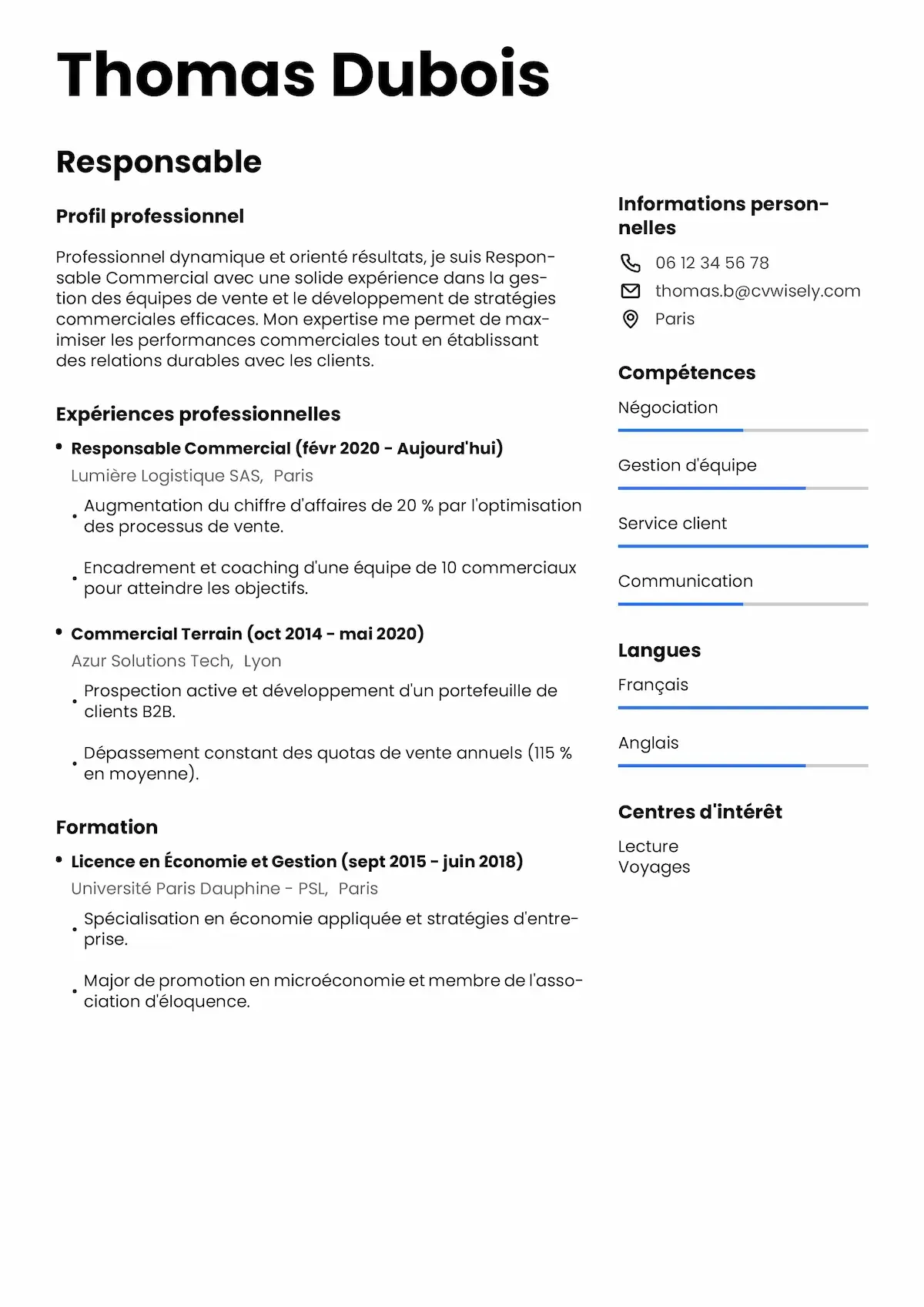 Les responsables du recrutement d'aujourd'hui passent juste quelques secondes à parcourir chaque CV avant de décider s'ils vont continuer à le lire. Ça veut dire que ton document doit tout de suite attirer l'attention tout en restant pro et facile à lire. Le truc, c'est de trouver le bon équilibre entre des infos complètes et une présentation claire et concise. Il est super important de mettre en avant les compétences spécifiques qui correspondent à la description du poste pour passer les filtres ATS et attirer l'attention de l'employeur.