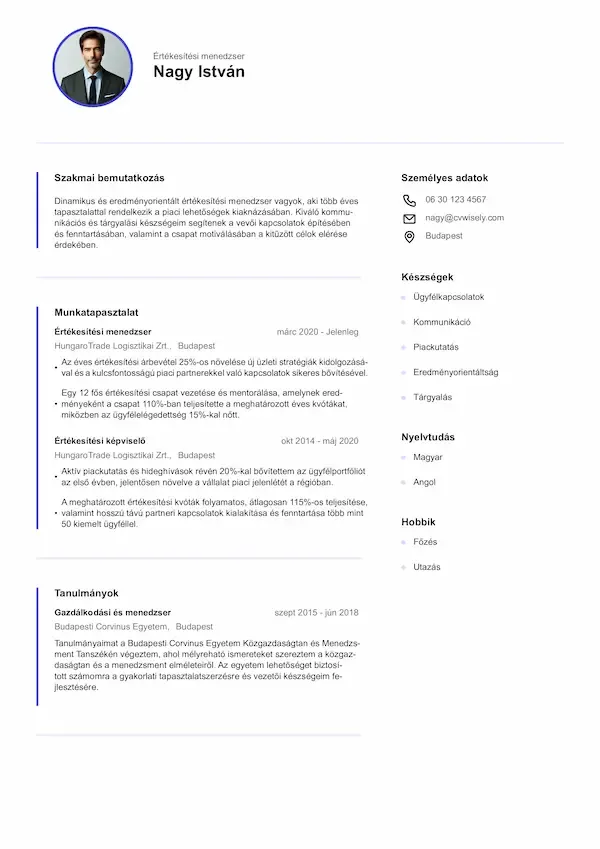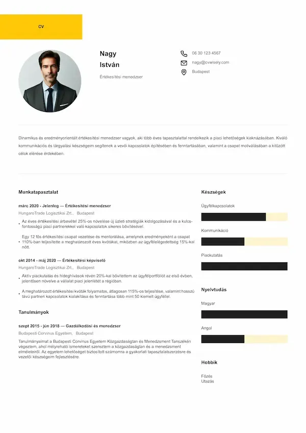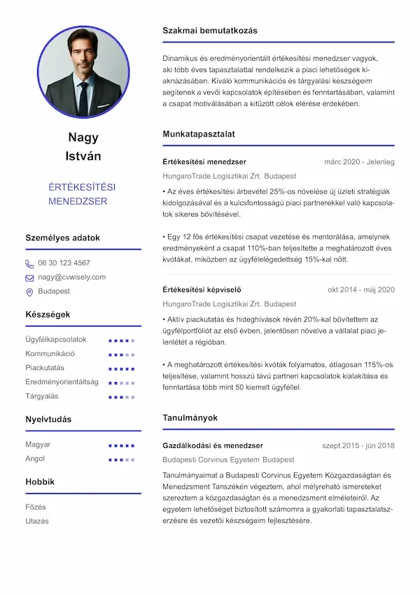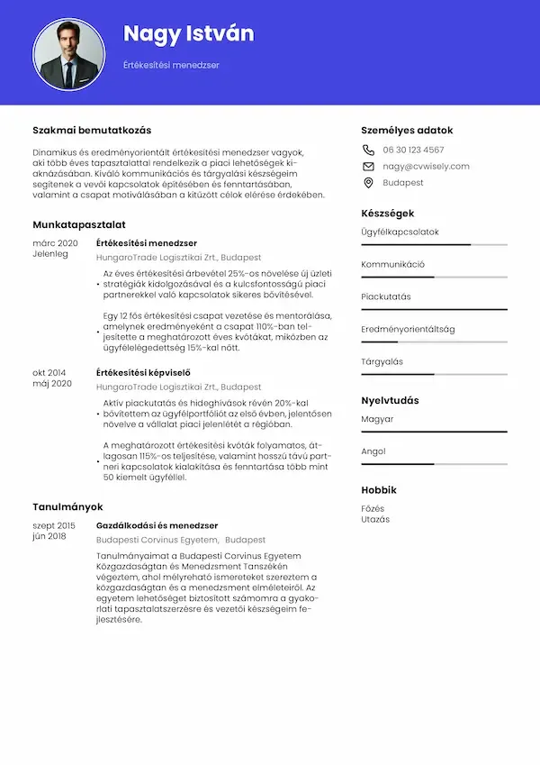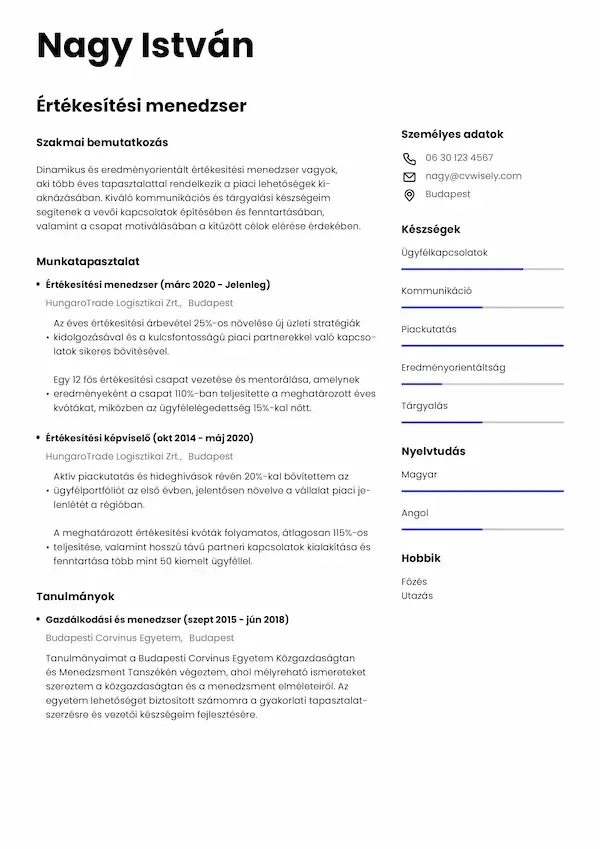 Az önéletrajz elkészítése korábban nagyon időigényes volt, de a CVwiselyvel gyors és egyszerű volt. Intuitív kezelőfelületük segítségével kevesebb mint 30 perc alatt elkészítettem egy önéletrajzot..